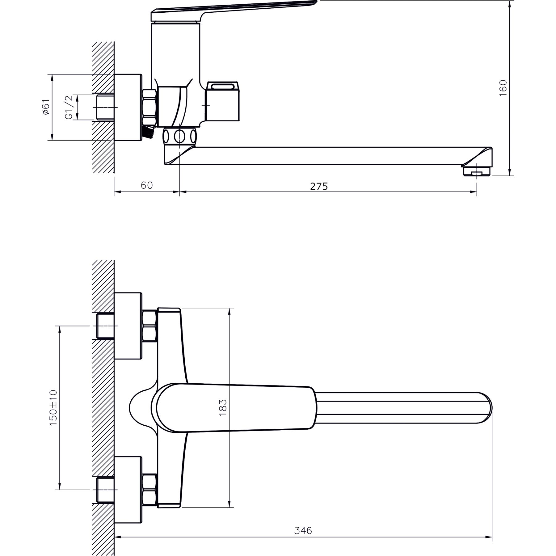 • Высота смесителя: