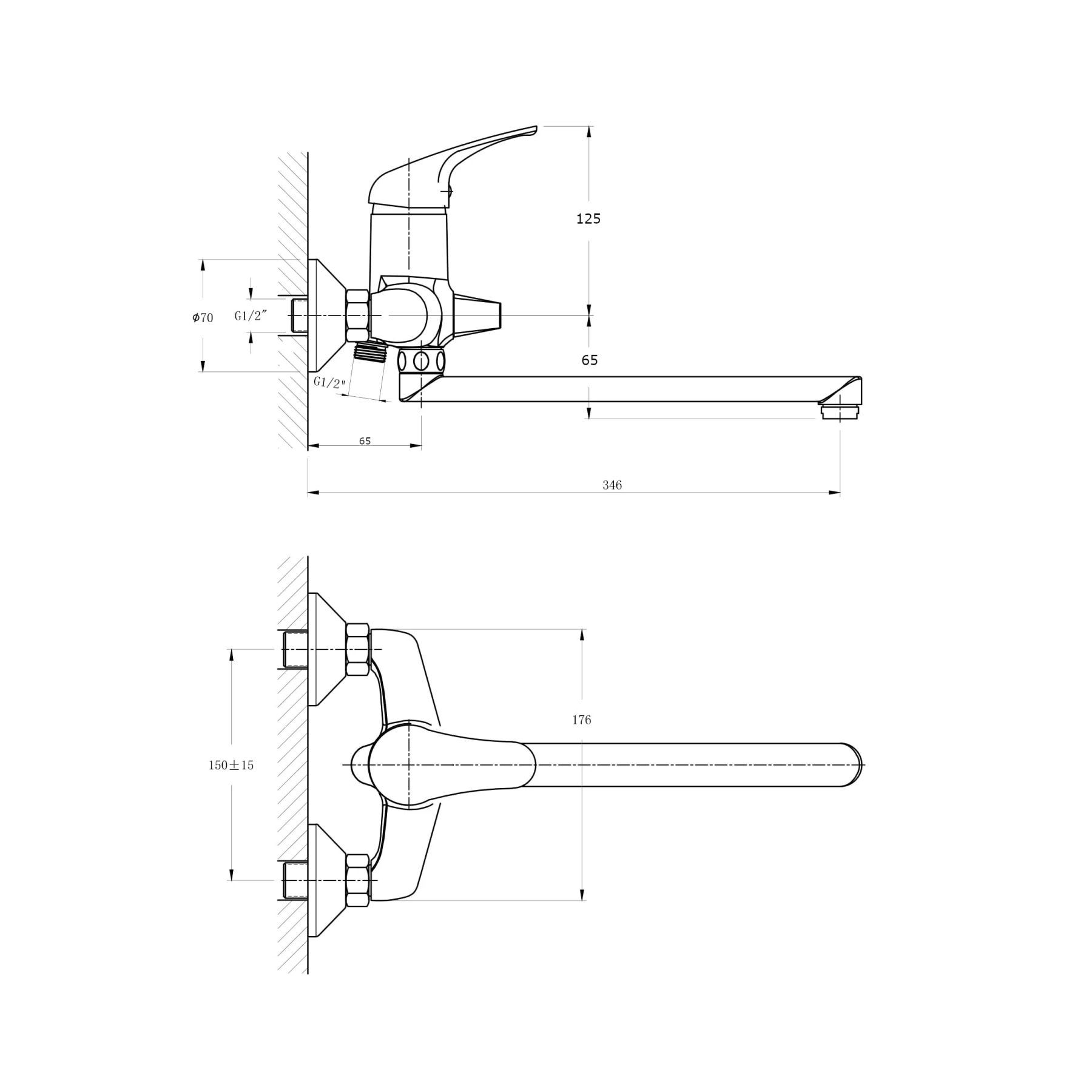 • Высота смесителя: