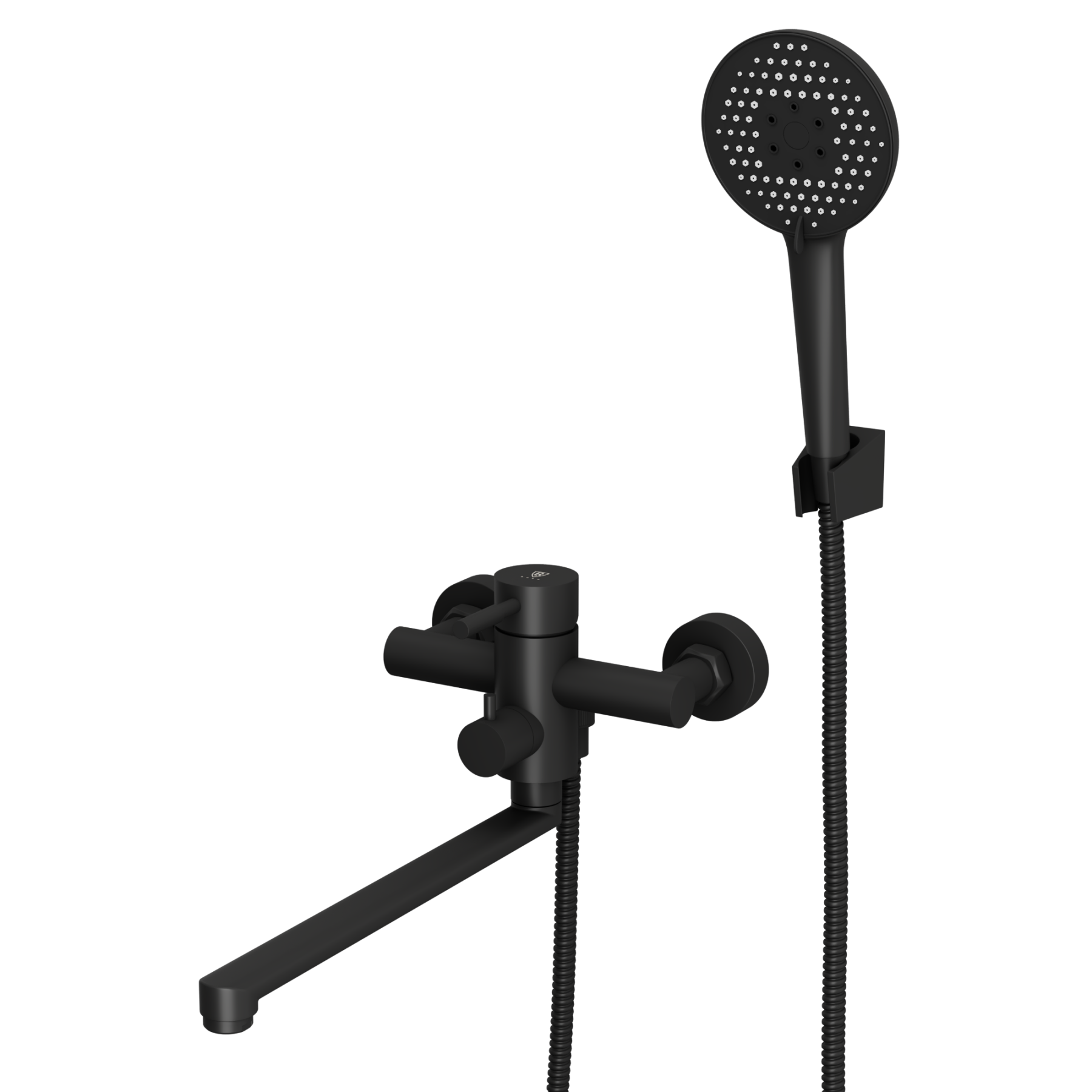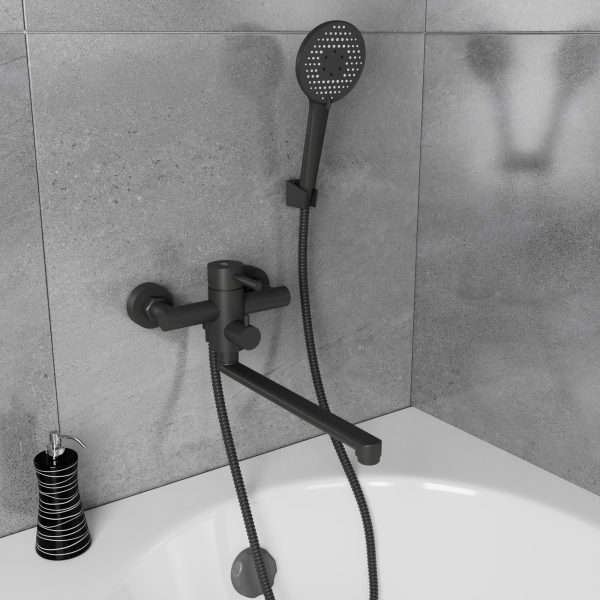 Смеситель для ванны RUSH Melos арт. SUS1101-51Black c длинным поворотным изливом изготовлен из нержавеющей стали SUS304 и имеет рычажное управление. Излив изготовлен из нержавеющей стали. В смеситель установлен картридж D-35 с керамическими пластинами, а также дивертор (переключатель). Пластиковый аэратор с нержавеющим корпусом. В комплекте 3-режимная душевая лейка и душевой шланг длиной 1,5м., держатель душевой лейки, фум-лента, индивидуальный пакет, паспорт, гарантийный талон.