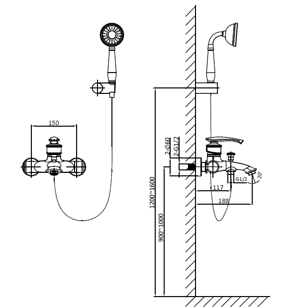 Смеситель для ванны с душем AltroBagno Beatrice 0204 Cr