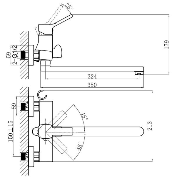 - Душевая трехрежимная лейка и шланг длиной 150 см уже в комплекте.