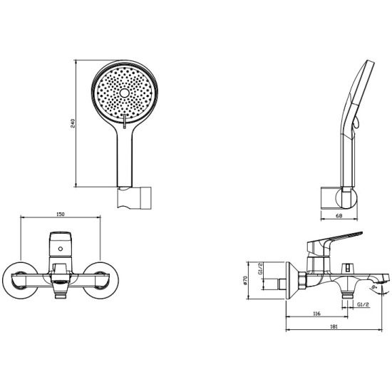 Смеситель для ванны с душем DQ Frankfurt короткий излив хром (DA1733201)