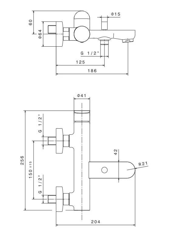 69440KM.21.018 Смеситель для ванны OLE настенный с дивертором ванна/душ, без лейки, хром
