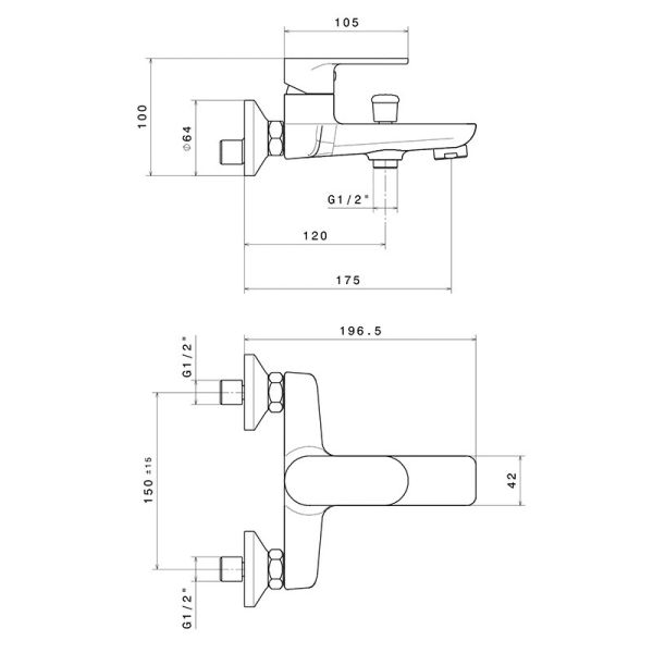 69340KM.21.018 Смеситель для ванны PIANO настенный без лейки, хром глянец Подробнее