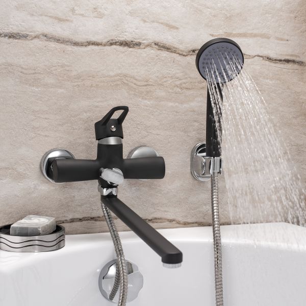 Однорычажный смеситель для ванны с длинным изливом - это сочетанием классических линий в модном черном оттенке, которое станет эффектным дизайнерским элементом вашего интерьера.