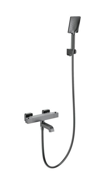 Смеситель для ванны с душем Wonzon & Woghand Stay 3 WW-B2026-A1-BGG с термостатом тёмный графит