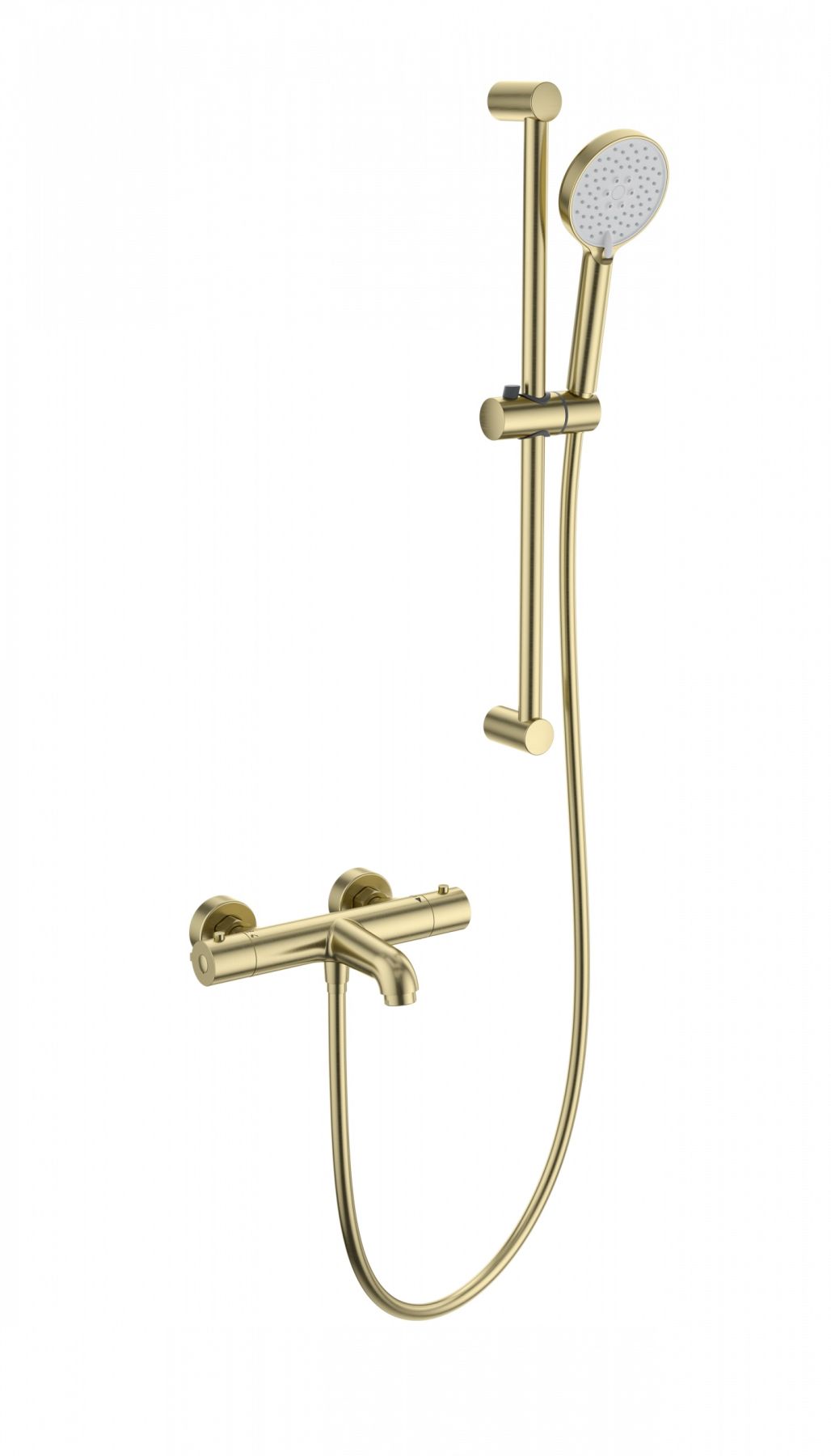 Смеситель для ванны с душевым гарнитуром и термостатом WONZON & WOGHAND, Брашированное золото (WW-C2006-A-BG)