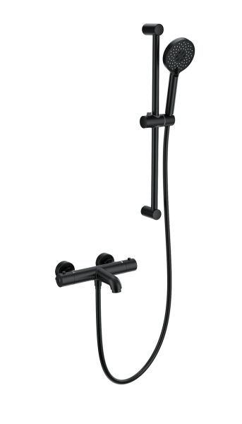 Смеситель для ванны с душевым гарнитуром Wonzon & Woghand WW-C2006-A-MB с термостатом чёрный матовый