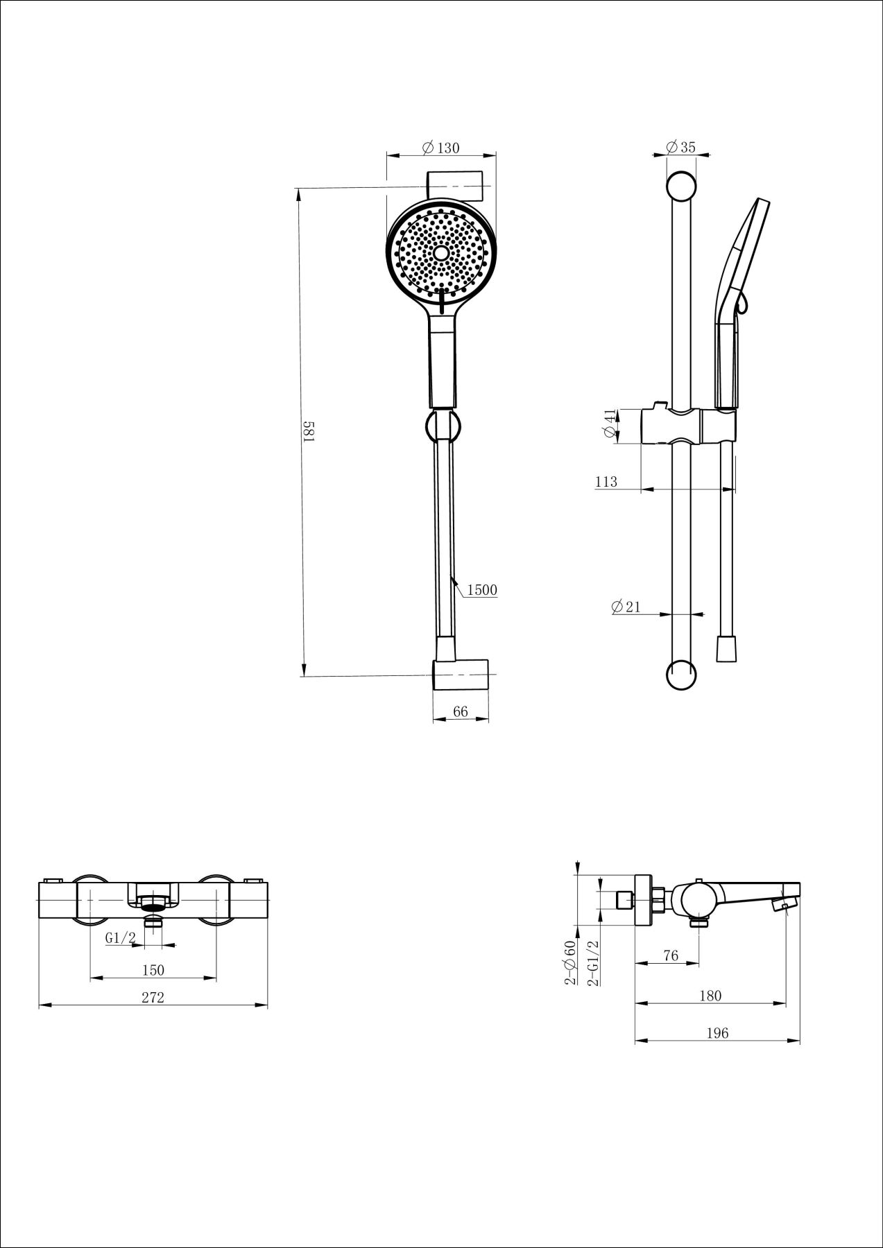 Смеситель для ванны с душевым гарнитуром и термостатом WONZON & WOGHAND, Темный графит (WW-C2018-A-BGG)