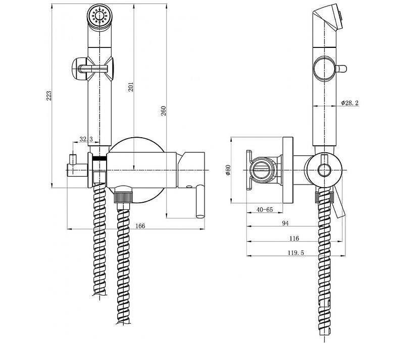 Лейка для биде с функцией плавной регулировки напора воды и шлангом длиной 1,2 м.