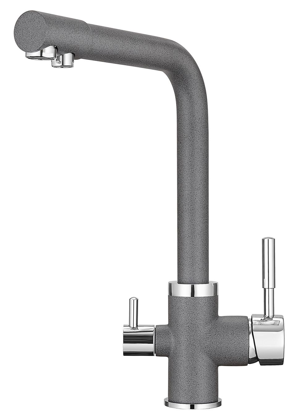 Смеситель для кухонной мойкиЦветовая гамма: Алюминиум, Классик, Антик, Песок, Пирит, Базальт, Арктик, Эспрессо, Графит, Черный, ШварцГибкая подводка (3 шт.); набор для крепления; прокладки уплотнительные (2 шт.); аэраторГарантийный срок от производителя - 5 лет