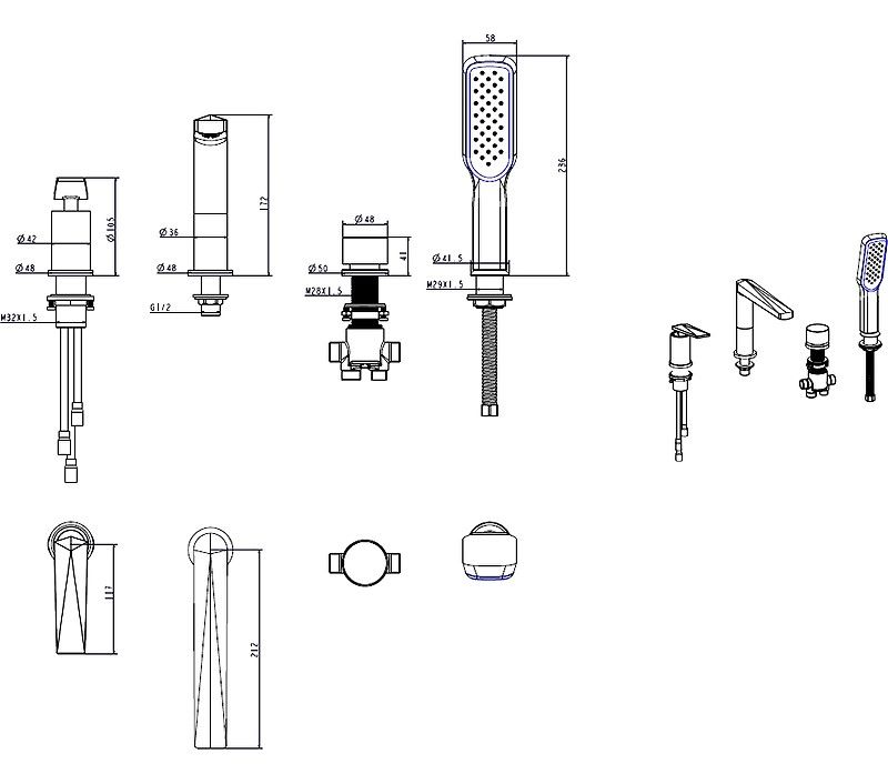 Смеситель на борт ванны Boheme Venturo 370-SGM антрацит глянец купить