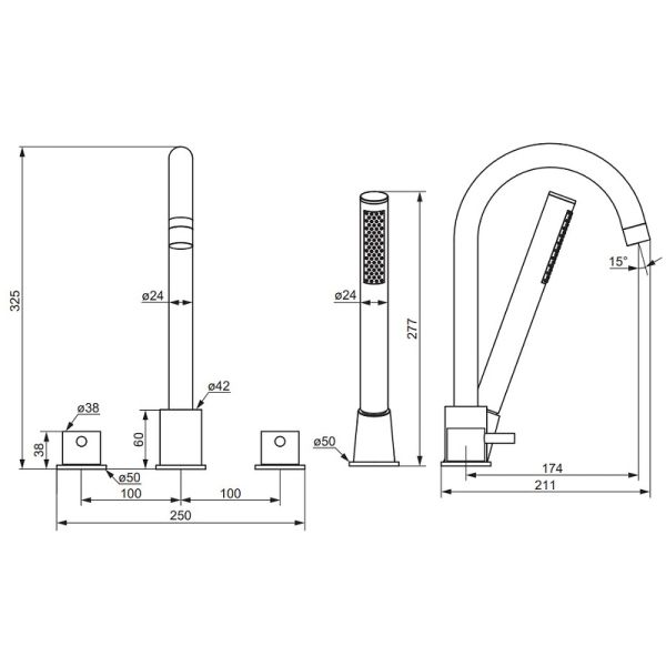 Смеситель на борт ванны Damixa Scandinavian Pure 360400300 Черный матовый