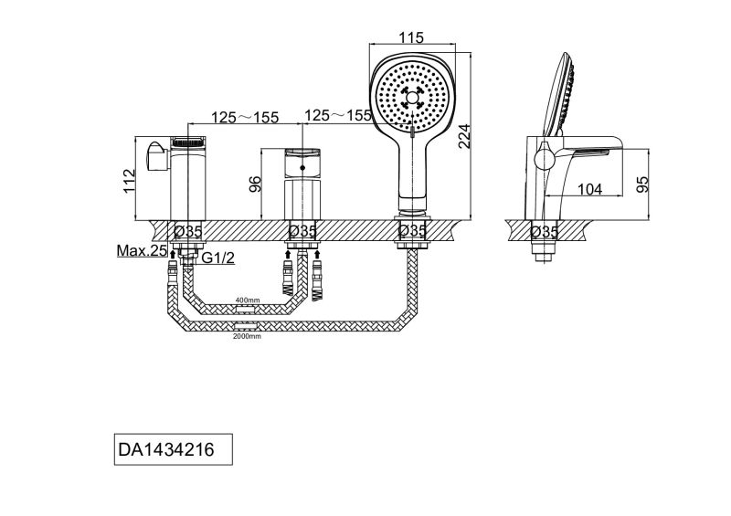 Смеситель на борт ванны DQ Berlin Technische чёрный/хром DA1434215