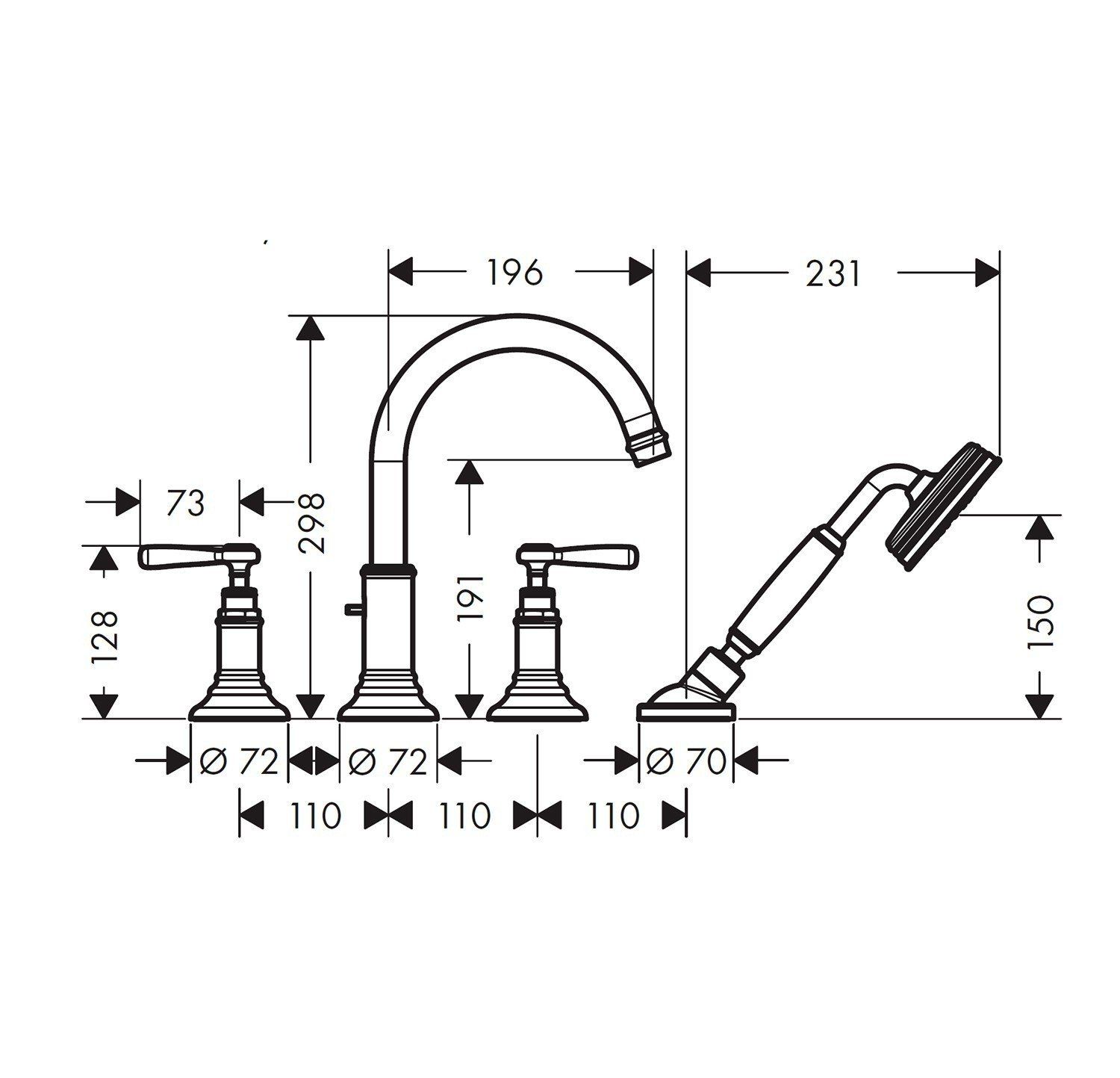 Смеситель на борт ванны Hansgrohe Montreux 16550000 хром