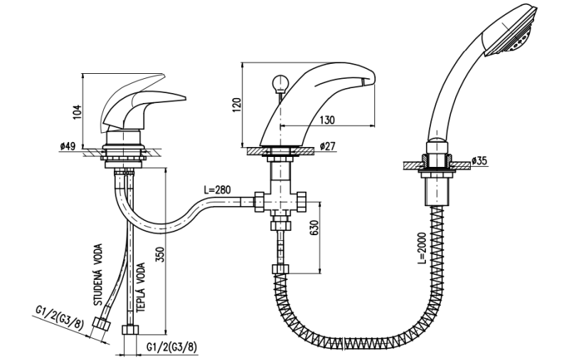 Смеситель на борт ванны Rav Slezak Dunaj D471.5SZ золото