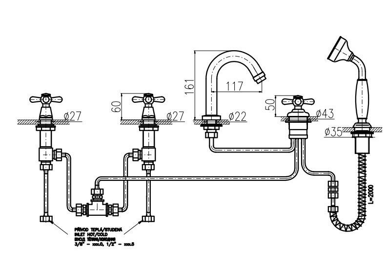 Смеситель на борт ванны Rav Slezak Morava retro MK162.5PZ золото