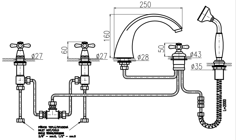Смеситель на борт ванны Rav Slezak Morava retro MK169.5PZ золото