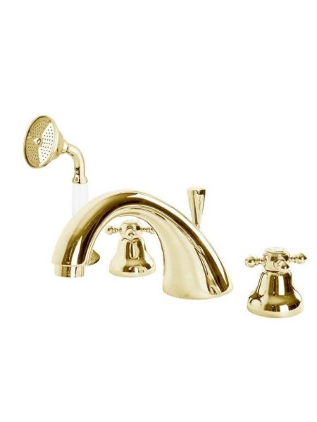 Смеситель на борт ванны с ручным выдвижным душем, золото Cezares GOLF-BVD-03/24-Bi