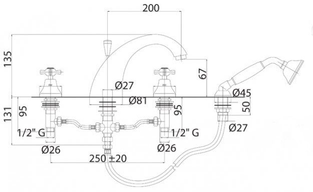 Оснащение: душевой шланг, душевая лейка, крепления, аэратор