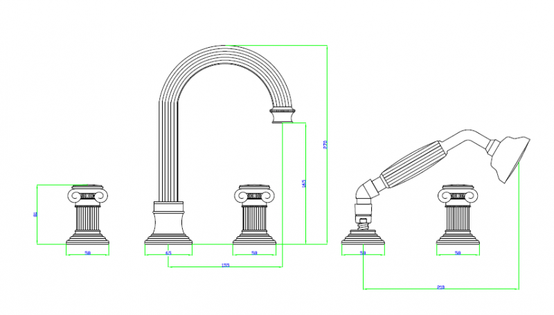 Оснащение: душевой шланг, душевая лейка, крепления, аэратор, гибкая подводка, дивертор