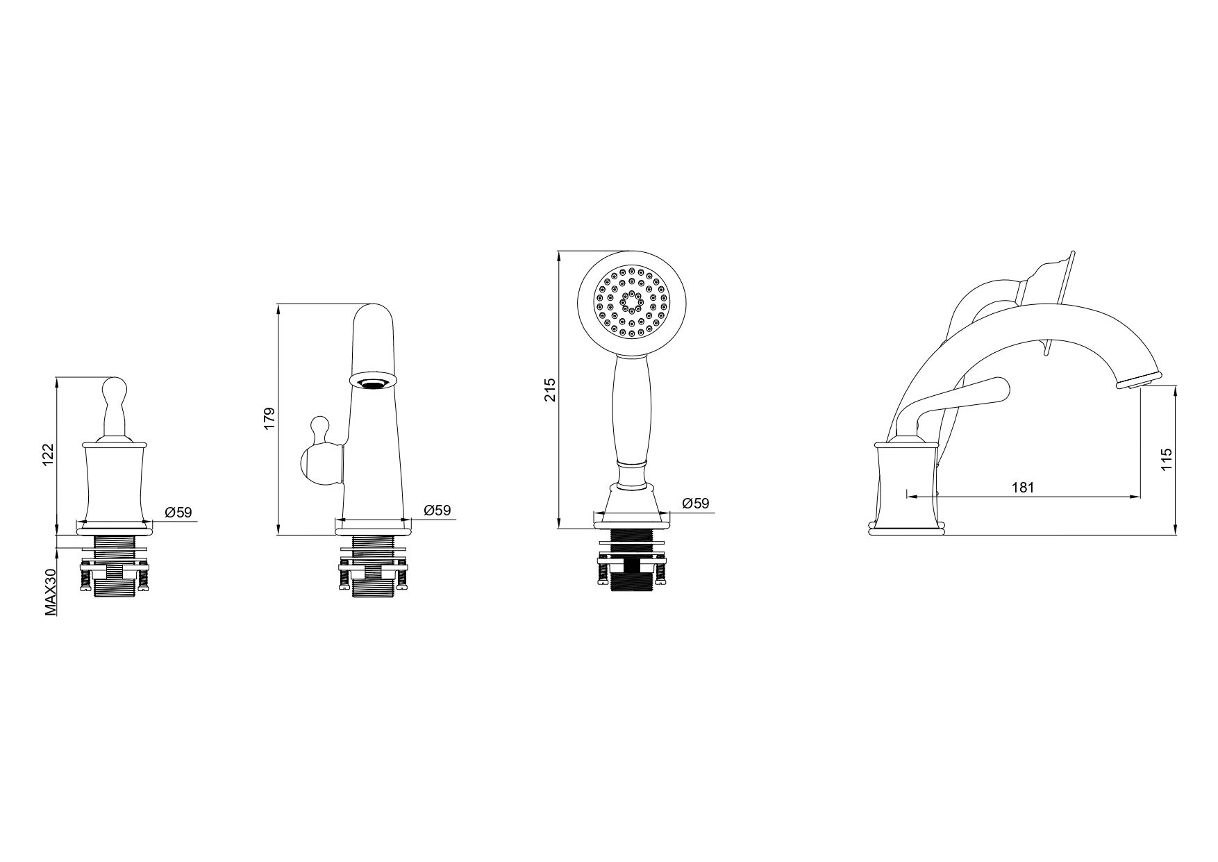 Смеситель на борт ванны WONZON & WOGHAND STEAM, Хром (WW-88659008-CR) Подробнее
