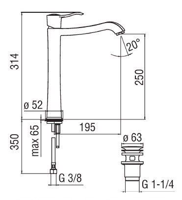 • Высота излива:250