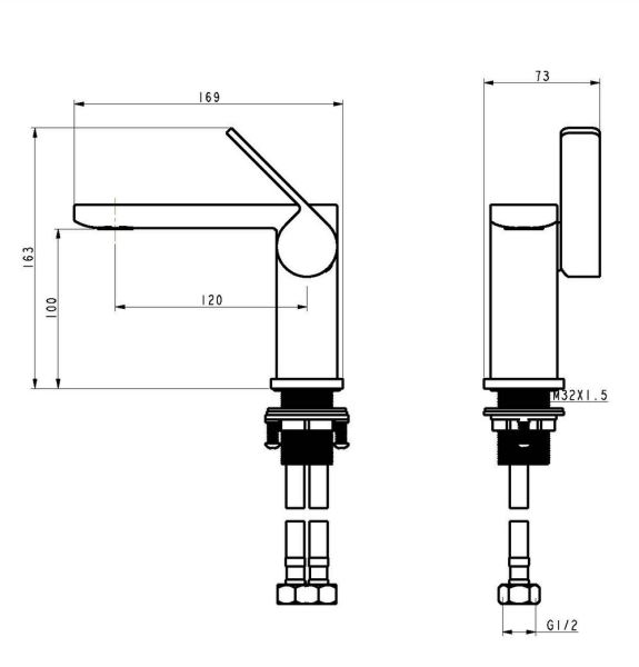 • Высота смесителя: