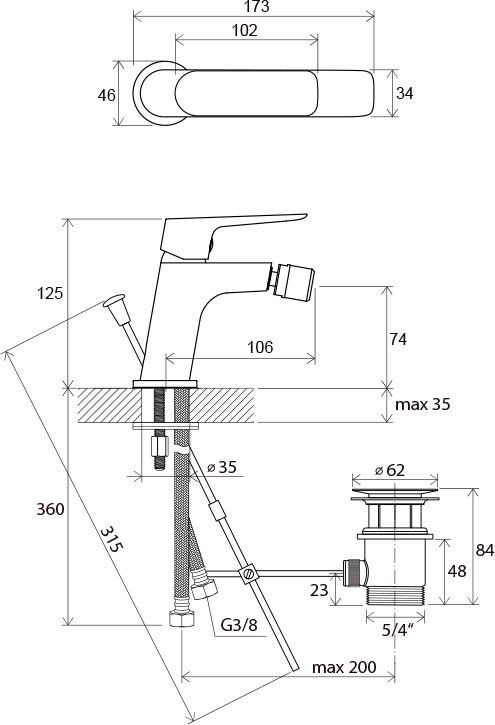 • соединительные шланги: гибкий 400 мм, диаметр G3/8