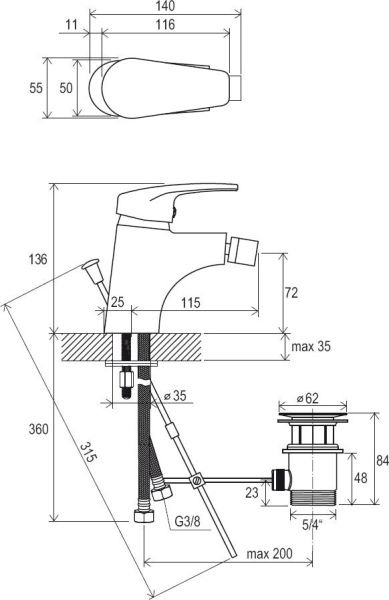 • соединительные шланги: гибкий 360 мм, диаметр G3/8