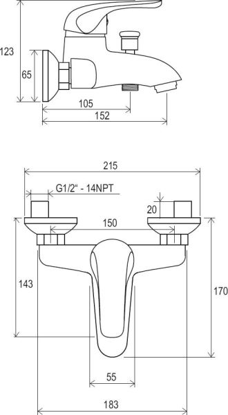 • межосевой размер смесителя : 150 мм