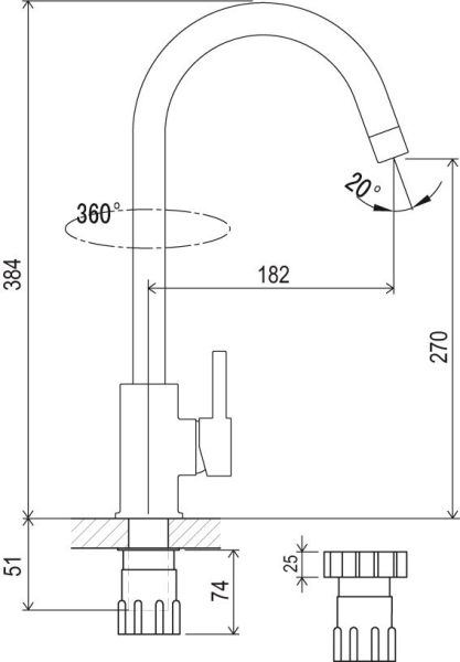 • исполнение: 360° - вращение излива без ограничений
