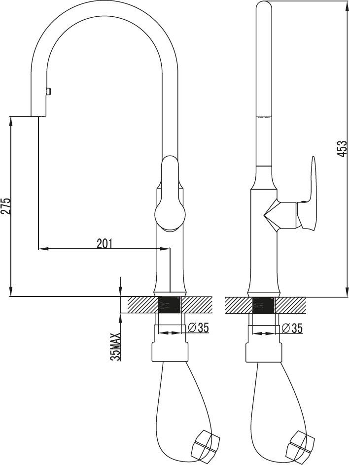 • подходит: к кухонной мойке или большому умывальнику
