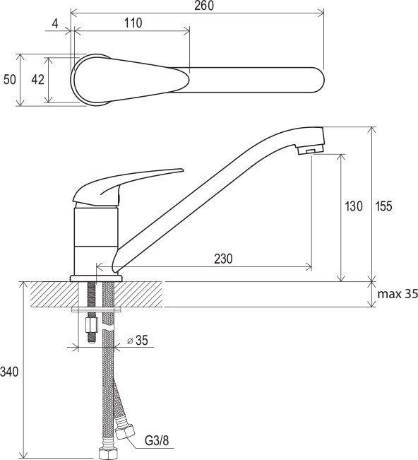- соединительные шланги: гибкий 350 мм, диаметр G3/8
