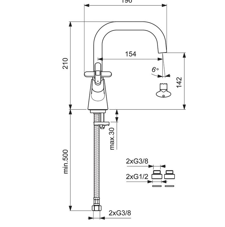 • Высота смесителя: