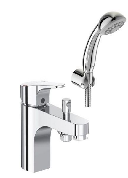 NEXT Смеситель для ванны/душа набортный, душевой гарнитур в комплекте (душевая лейка Ø70 мм, металлический шланг 1500 мм, держатель для лейки). Смеситель однорычажный