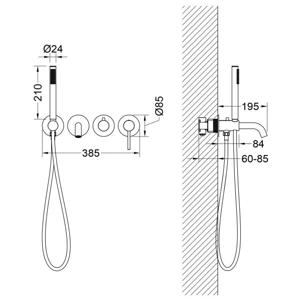 Черная сантехника становится все более популярной для ванных комнат из-за способности расставлять акценты. Встраиваемый смеситель Timo Saona 2314 предназначен для монтажа в твердой или полой стене. Уникальная дизайнерская модель с раздельными горизонтальными блоками, создаст неповторимый современный интерьер в ванной комнате. Основные преимущества встроенного смесителя: коммуникации, крепления и механизмы спрятаны в стену и видны только декоративные элементы, установить встроенный смеситель можно в любом месте. Стильная лейка-карандаш удобна в использовании и фиксируется в держателе с подключением душа. Регулировка температуры и напора воды осуществляется джойстиком справа. Переключение потока воды с излива на ручную лейку осуществляется поворотом ручки дивертора. Сложностей монтажа не возникает при установке смесителя опытным сантехником. Внимательно изучите инструкцию по монтажу и эксплуатации. Черная сантехника требует бережного ухода.