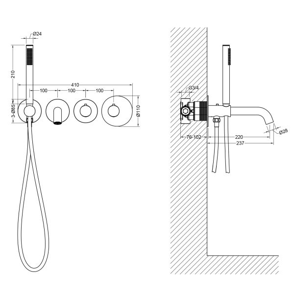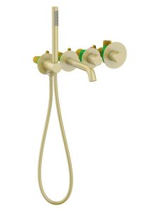 Цвет "матовое золото" никогда не выйдет из моды, во все времена драгоценный металл был признаком богатства. Встраиваемый смеситель Timo Saona 2324 предназначен для монтажа в твердой или полой стене. Уникальная дизайнерская модель с раздельными горизонтальными блоками создаст неповторимый современный интерьер в ванной комнате. Основные преимущества встроенного смесителя: коммуникации, крепления и механизмы спрятаны в стену и видны только декоративные элементы, установить встроенный смеситель можно в любом месте. Термостатический картридж поддерживает стабильную температуру воды, обеспечивая максимально комфортные условия для принятия водных процедур. Стильная лейка-карандаш удобна в использовании и фиксируется в держателе с подключением шланга для душа. Регулировка температуры и напора воды осуществляется джойстиком справа. Переключение потока воды с излива на ручную лейку осуществляется поворотом ручки дивертора. Сложностей монтажа не возникает при установке смесителя опытным сантехником. Внимательно изучите инструкцию по монтажу и эксплуатации.