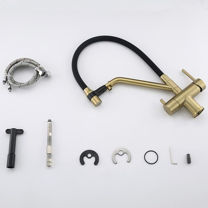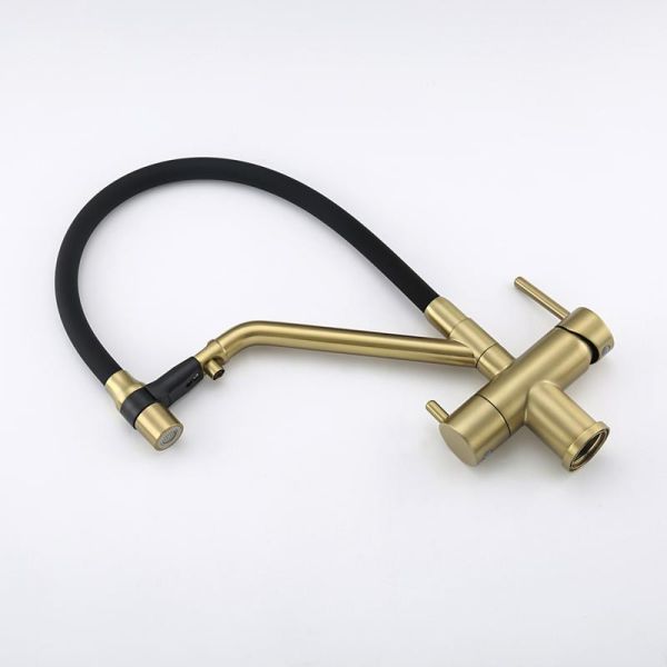 Смесители для кухни Gappo G4398-83 под фильтр с гибким изливом золото/чёрный