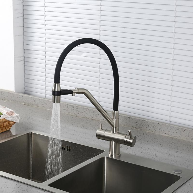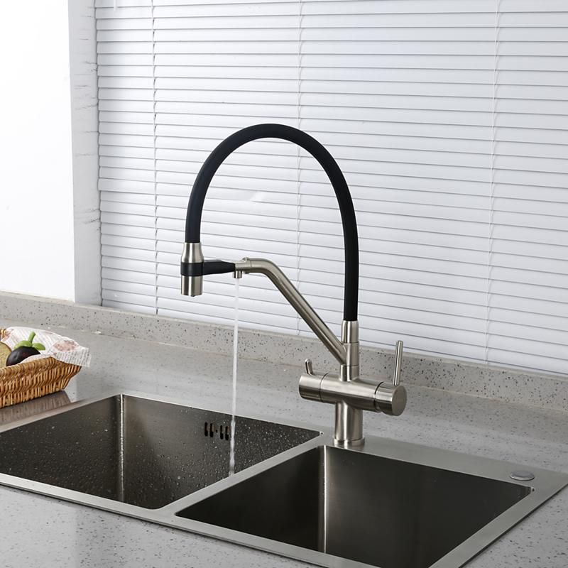 Смесители для кухни Gappo G4398-85 под фильтр с гибким изливом сатин/чёрный купить