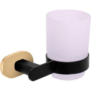 Стакан для зубных щеток Rav Slezak Yukon YUA0201CMATZ Черный матовый ЗолотоСтакан RavSlezak Yukon с настенным держателем - это стильный предмет интерьера, предназначенный для ванной комнаты. Крепится на стену. Материал, применяемый для производства аксессуара - латунь и стекло. Практичная и в то же время продуманная вещь, выполненная в стиле модерн.