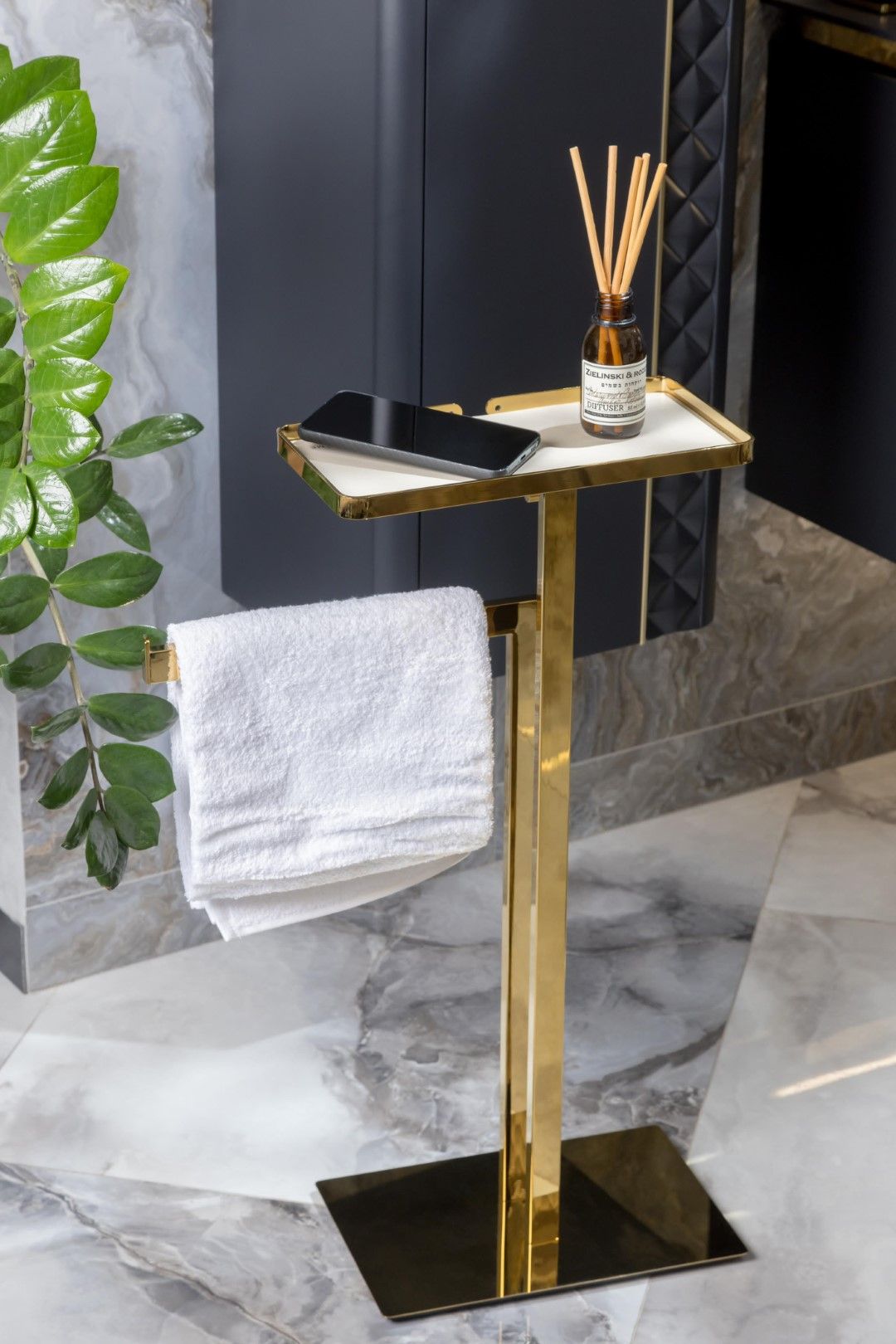 Стойка напольная с полкой и полотенцедержателем Boheme 10952-G золото купить