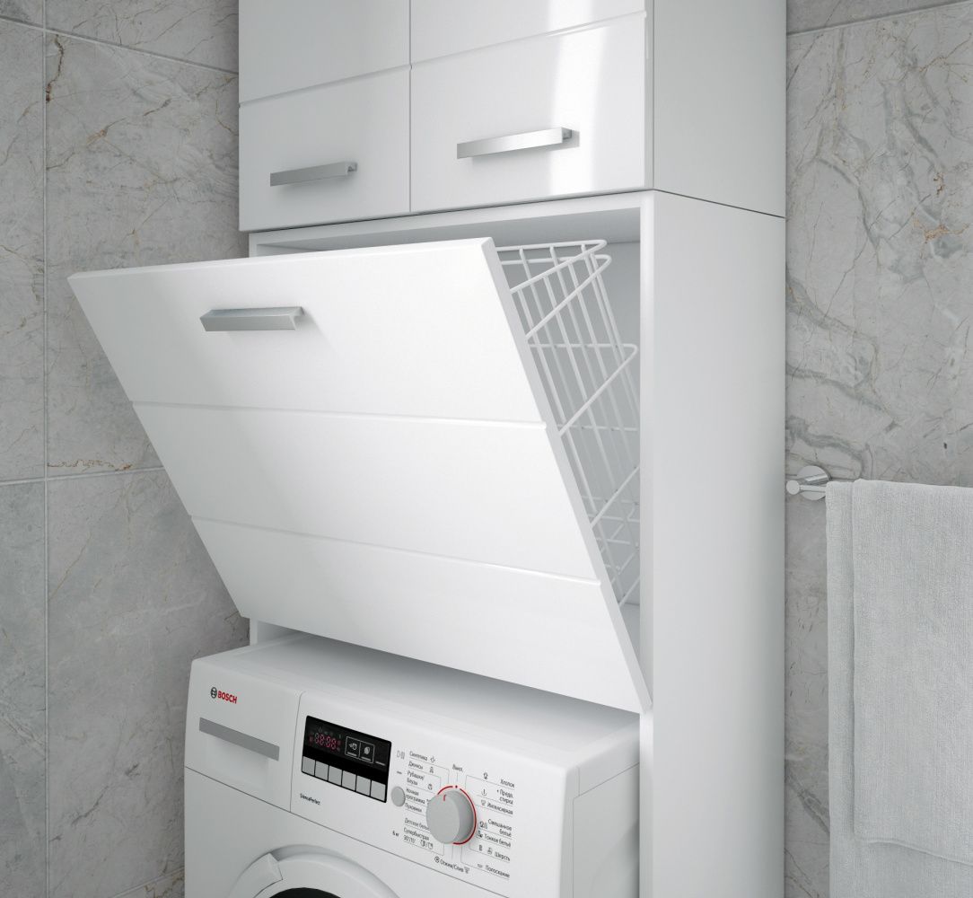 Стойка Corozo Денвер 65 SD-00000562 выполнен в современном стиле и предназначена для установки над стиральными машинами. Модель оснащена откидной фасад-створкой с бельевой корзиной внутри. Напольная конструкция обеспечивает легкий монтаж и не требует специального ремонта в помещении. Корпус выполнен из матового ЛДСП, фасады из МДФ и покрыты белой глянцевой плёнкой, что обеспечивает изделию привлекательный внешний вид, а также износостойкость и долговечность.