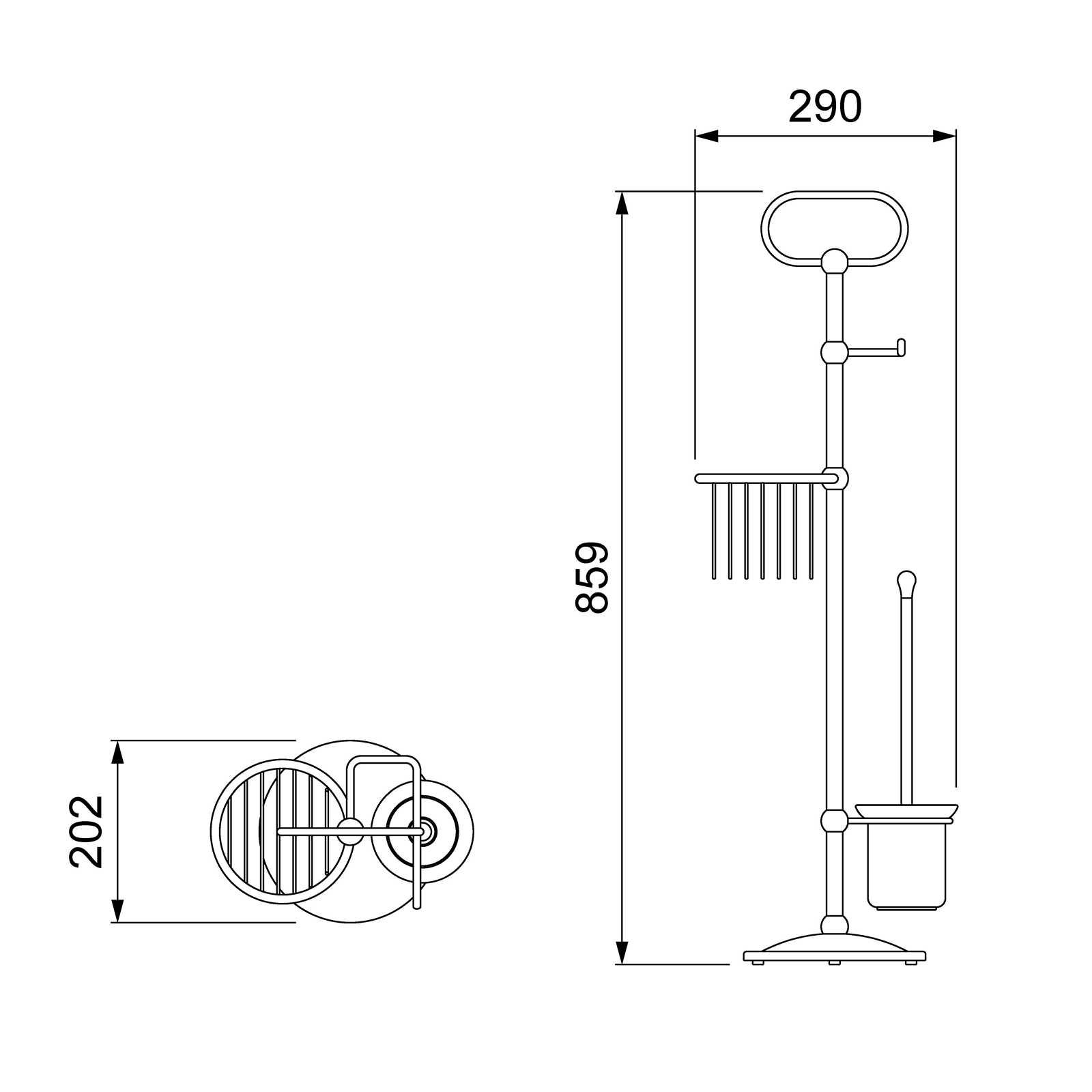 Стойка для туалета Timo Nelson - многофункциональный аксессуар. Представленная модель позволит разумно разместить важные предметы и при этом ничего не крепить на стены. Необходимые аксессуары здесь установлены на напольной комбинированной штанге высотой 859 мм с помощью поворотных креплений. Для изготовления стойки, предназначенной для туалета, использованы: Латунь, Стекло. Все элементы расположены эргономично и компактно. При всех достоинствах изделия стоимость его разумна. Производитель стойки Timo установил на нее гарантию 5 лет.