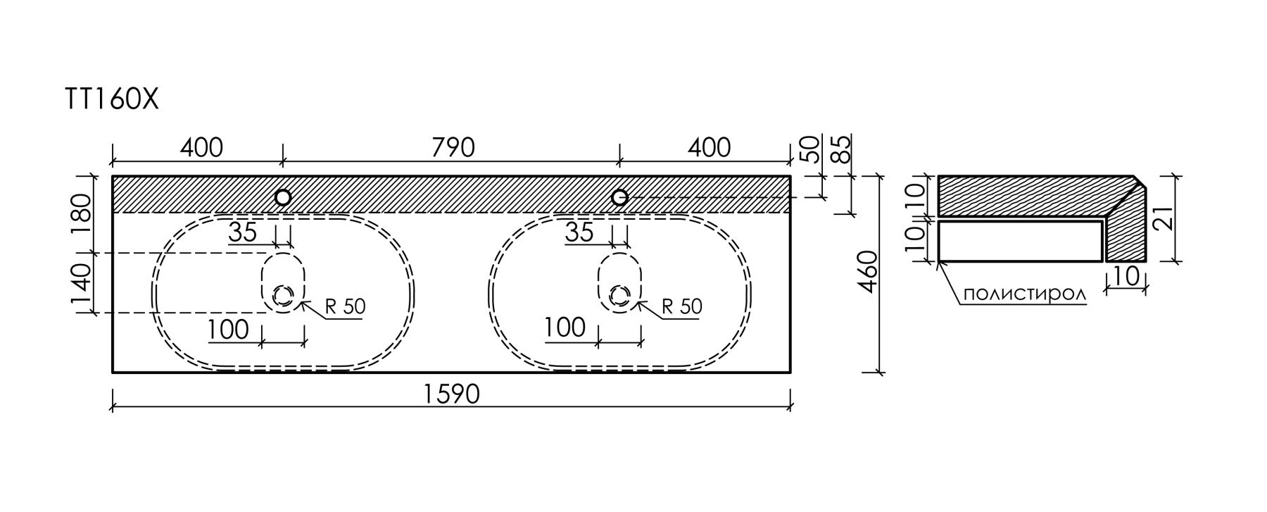 Столешница из керамогранита Sancos TT160A2X c отверстием под смеситель 159 см Kreman