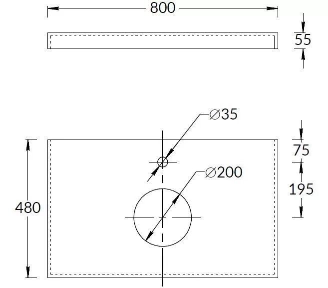 Столешница из керамического гранита «Про Чементо» с отверстием под смеситель. Предназначена для использования раковинами CANALETTO, а также с тумбами MODULA. Отверстия для раковины и смесителя располагаются в центре. Смеситель устанавливается в столешницу (используйте смесители с подходящим типом установки).