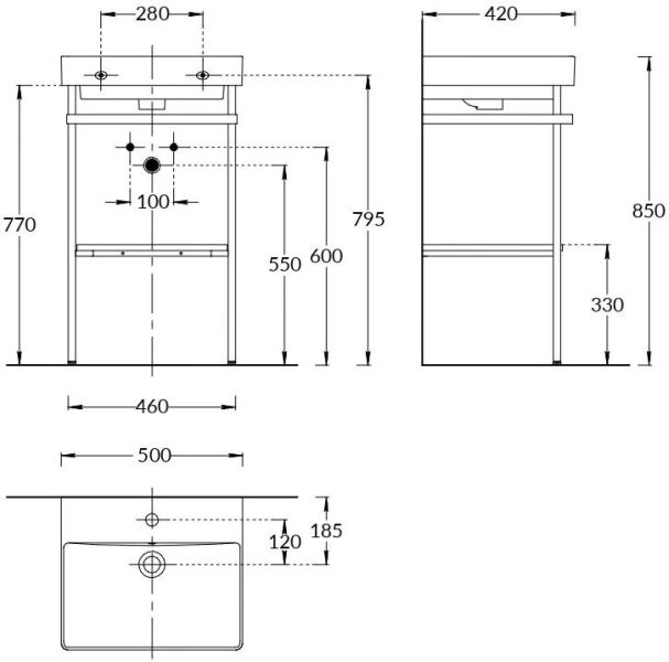 Стильная металлическая структура, окрашенная в чёрный матовый цвет, — интересная альтернатива привычной тумбе. Предназначена для установки раковины PRO шириной 50 см. Белая матовая полка из окрашенного ЛДСП заказывается отдельно.