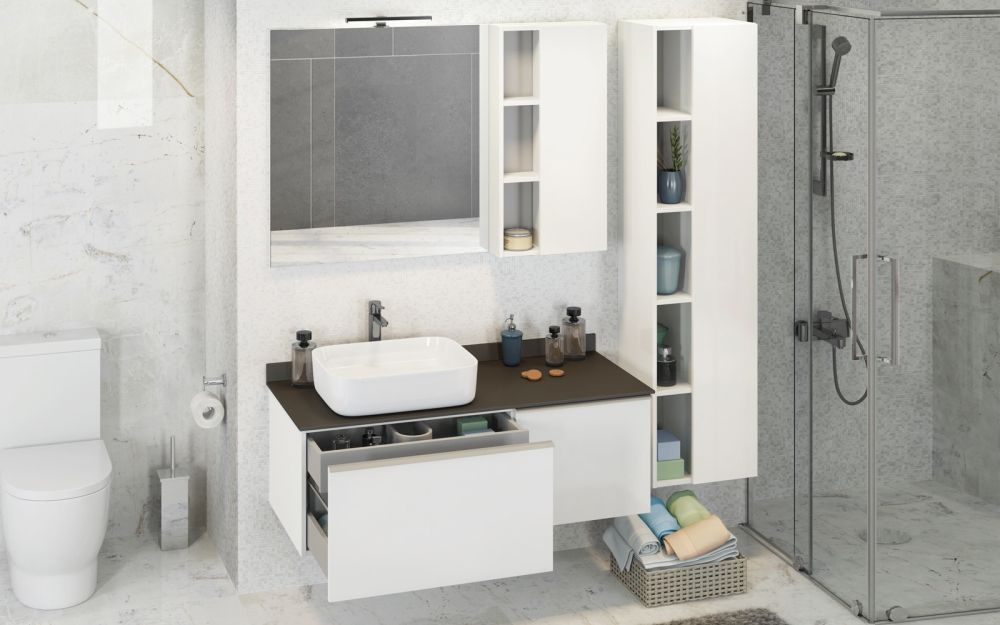 Тумба-умывальник Comforty Милан-120 белая с графитовой столешницей с раковиной Comforty T-Y9378Тумба с раковиной