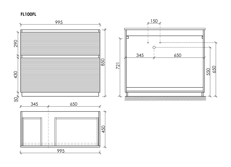 • Тумба напольная с двумя выдвижными ящиками с доводчиками скрытого монтажа