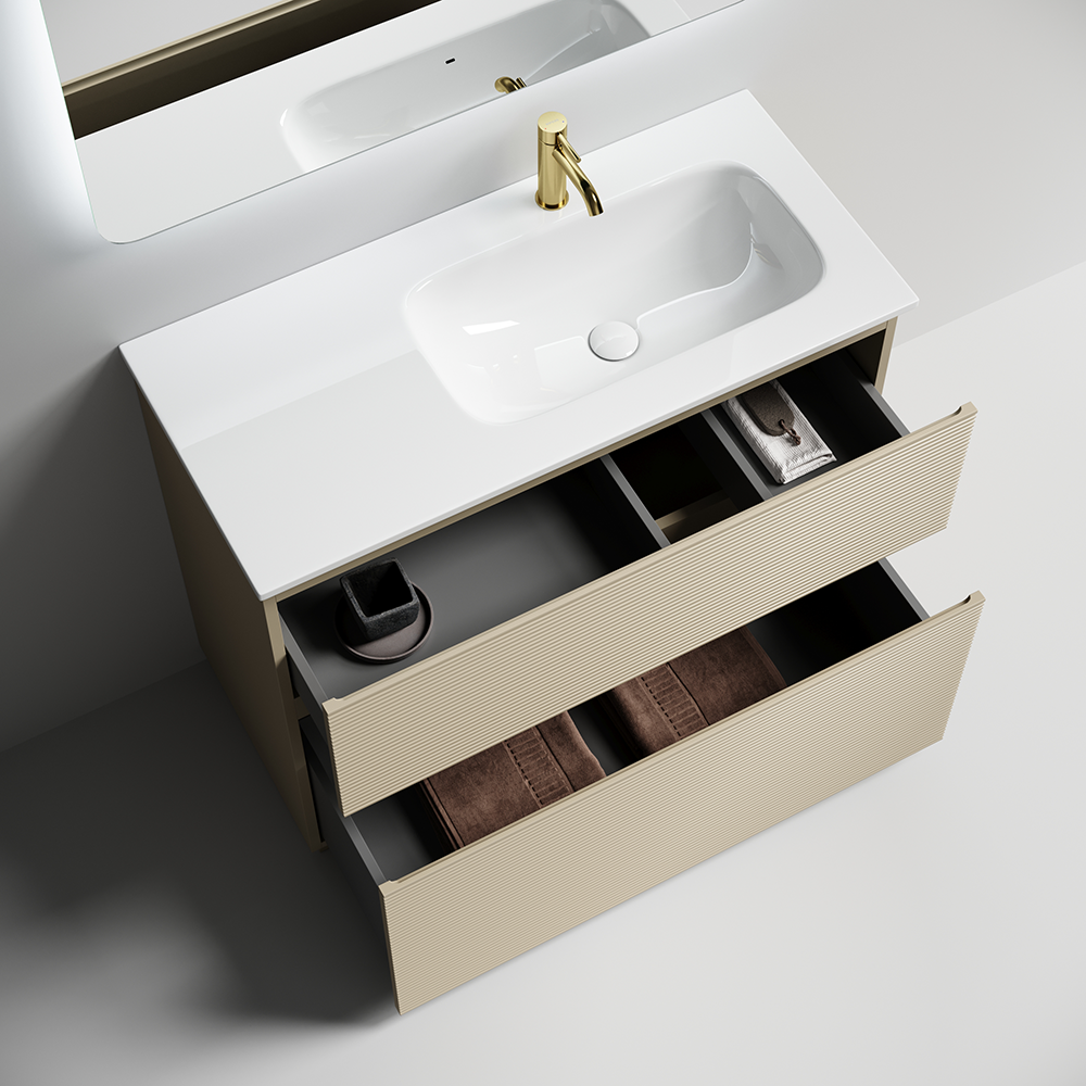 • Тумба напольная с двумя выдвижными ящиками с доводчиками скрытого монтажа